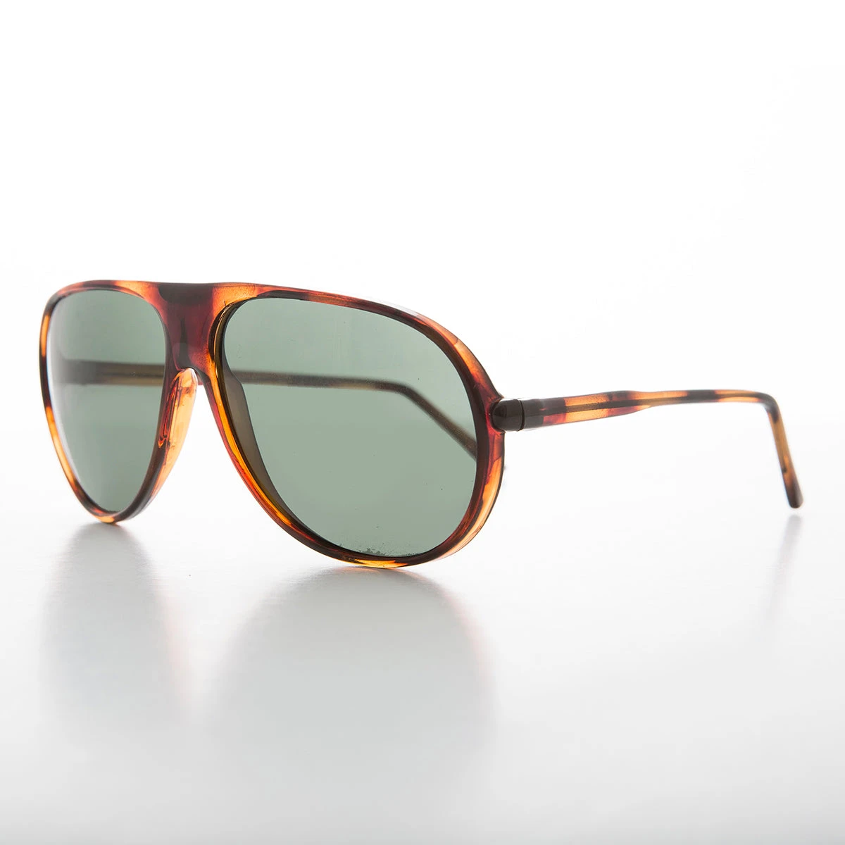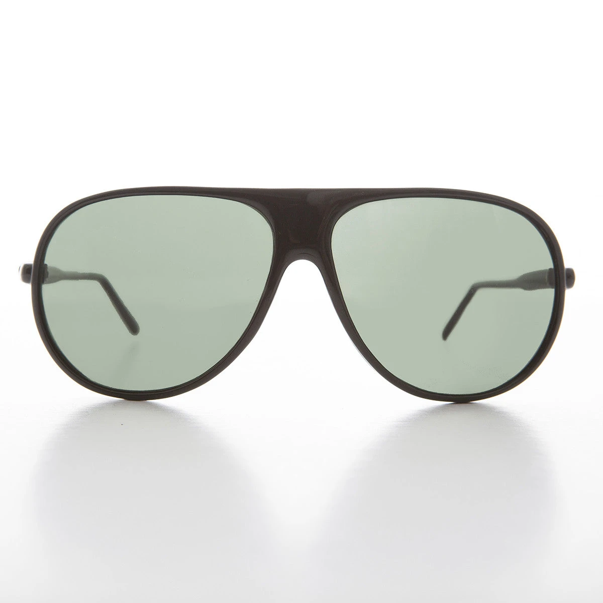 Totally awesome! Vintage 1980s closed-bridge pilot sunglasses feature an optical-quality ground-and-polished glass lens. Made from quality acetate with metal hinges and optical wire-core temples. Optical quality frame.