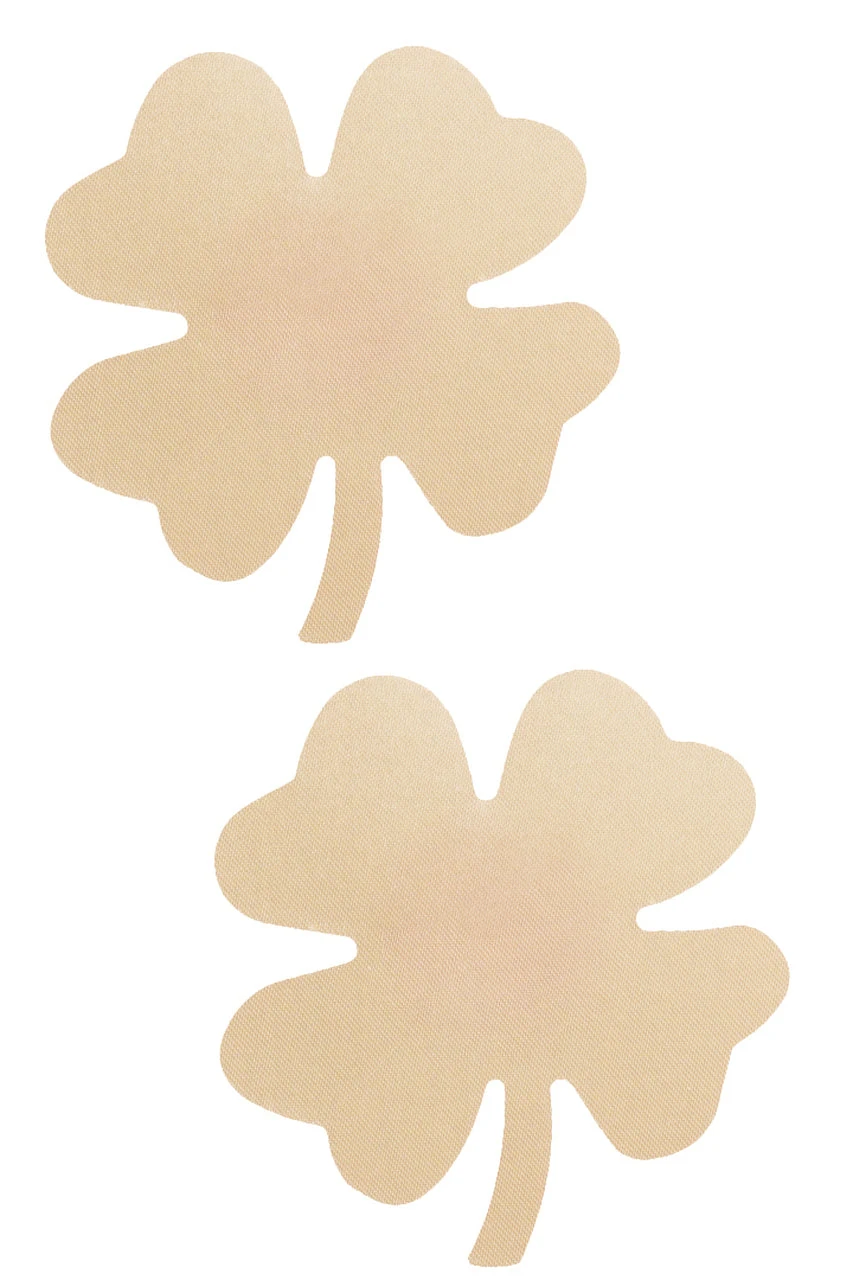 Women’s Beige Mini Shamrock Nipple Pasties. Feature self adhesive tape, just peel and stick on clean, dry, oil-free skin.