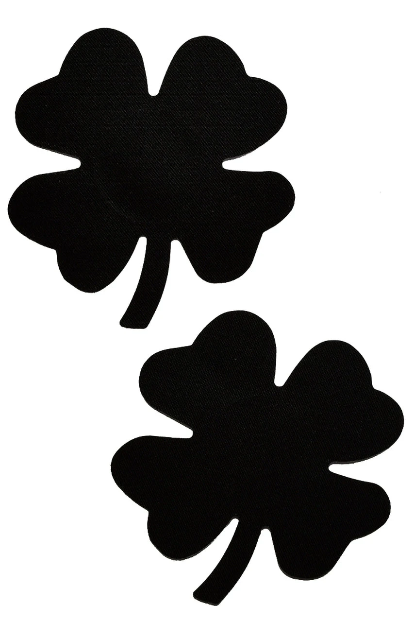 Women’s Black Mini Shamrock Nipple Pasties. Feature self adhesive tape, just peel and stick on clean, dry, oil-free skin.