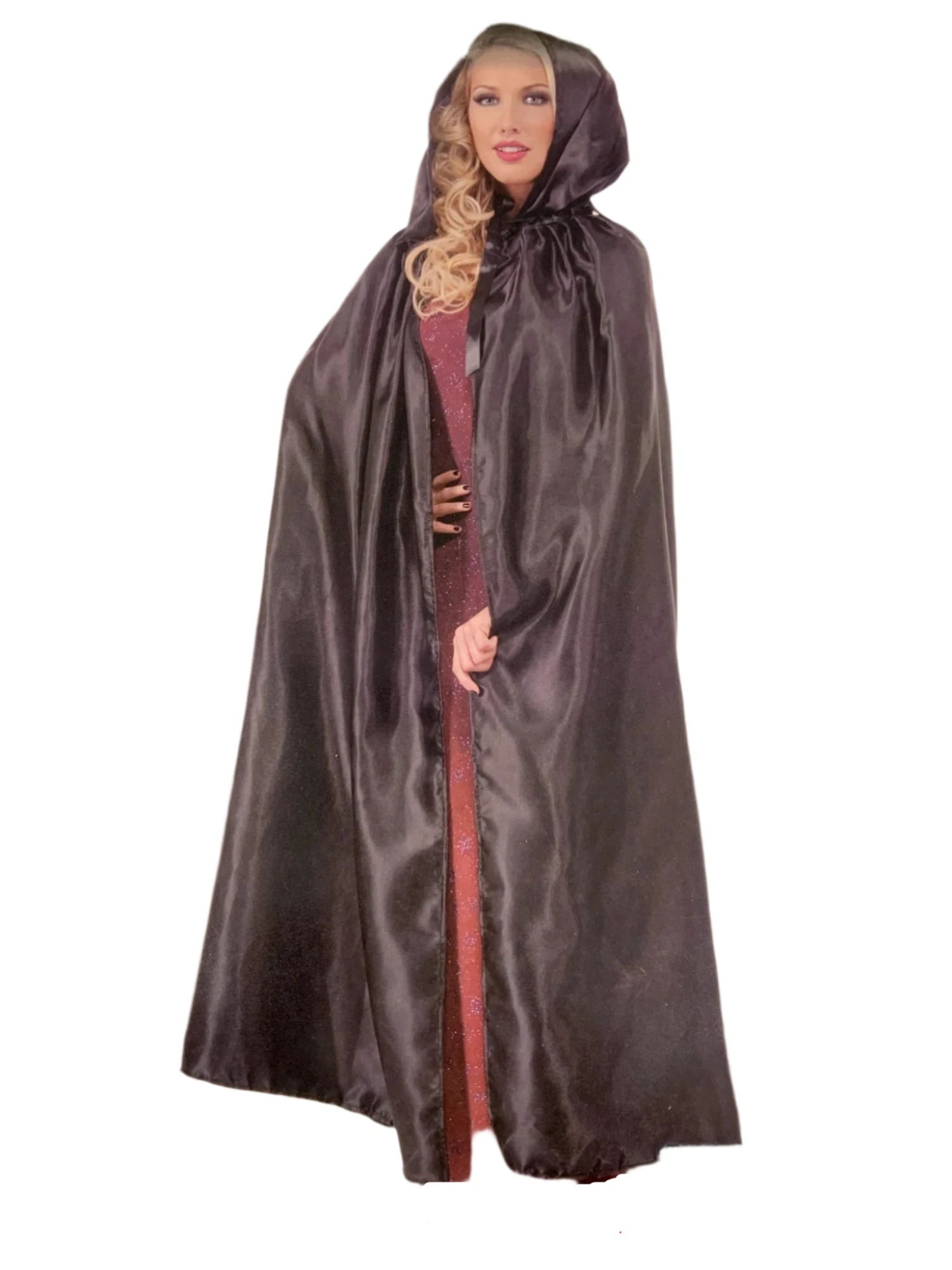 Add a touch of mystery and elegance to your wardrobe with our Fancy Masquerade Hooded Cape. Perfect for masquerade balls or themed parties, this black cape will elevate any outfit.