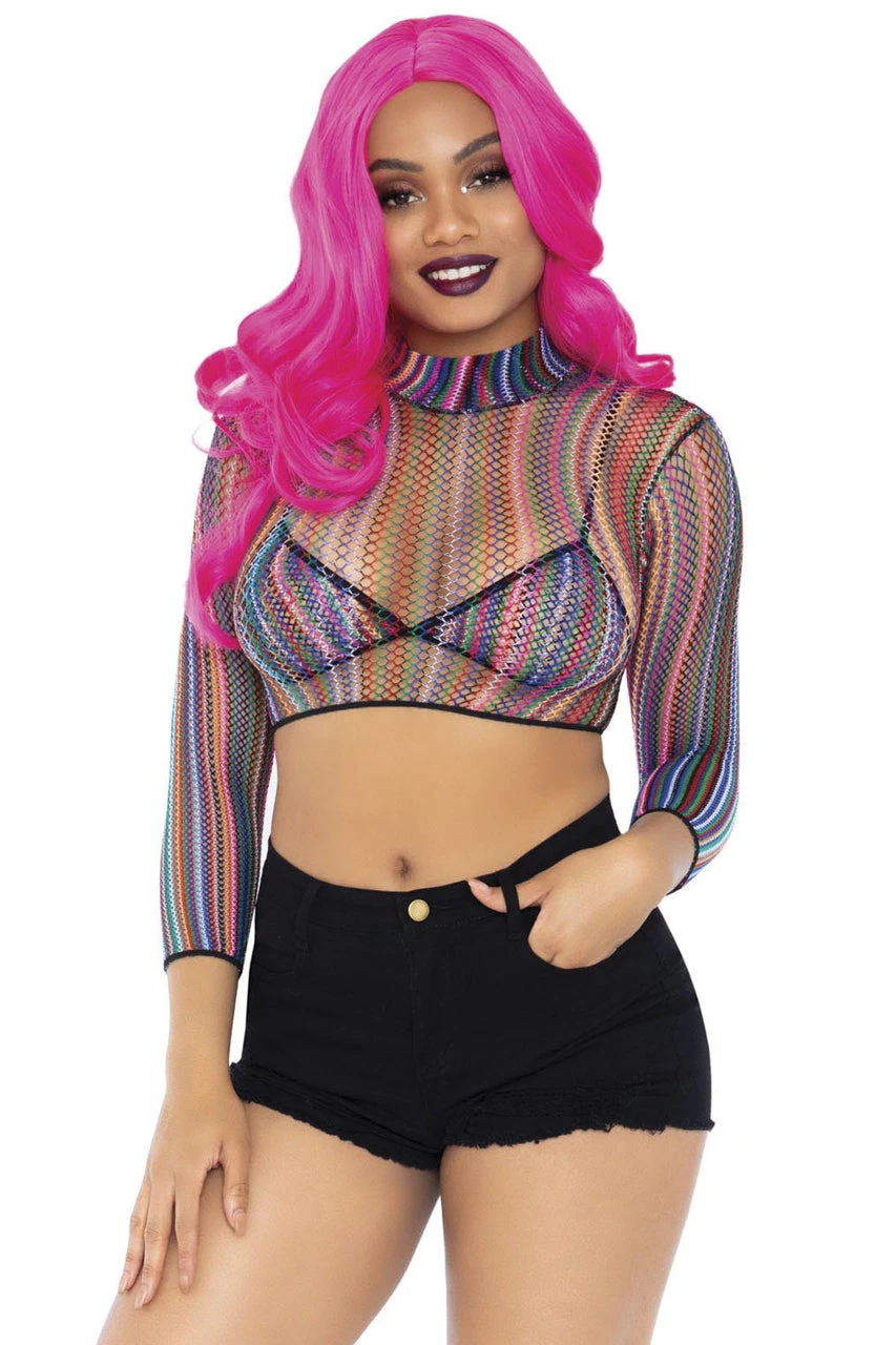 LEG AVENUE Colorful Fishnet Bikini And Crop Top Set