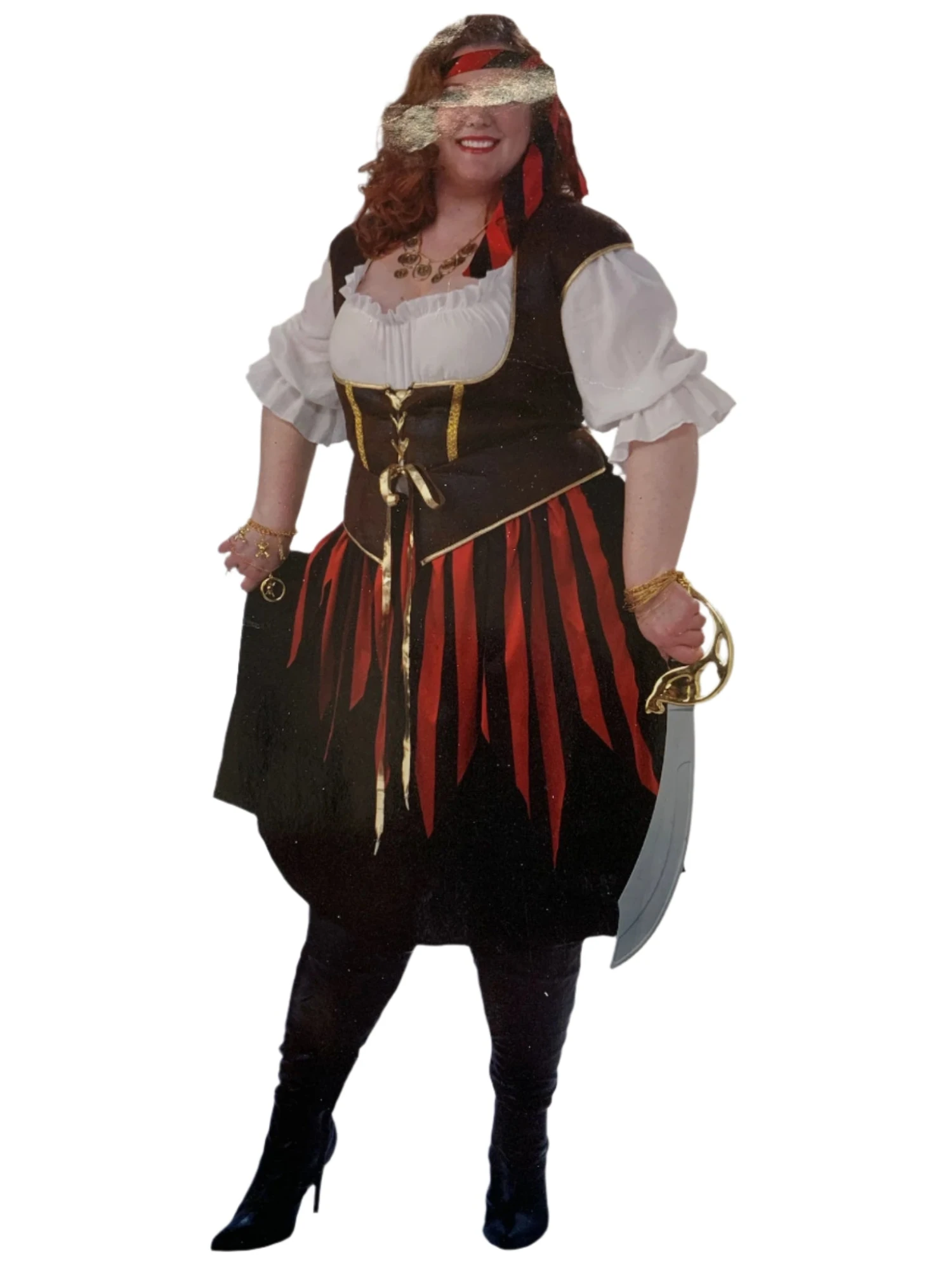 Transform into a badass Pirate Lady with this dress, headband, and vest combo! Show off your swashbuckling style with ease and rock any costume party. Get ready to steal the show with this outfit, arrrgh-mazing! (Sword not included)