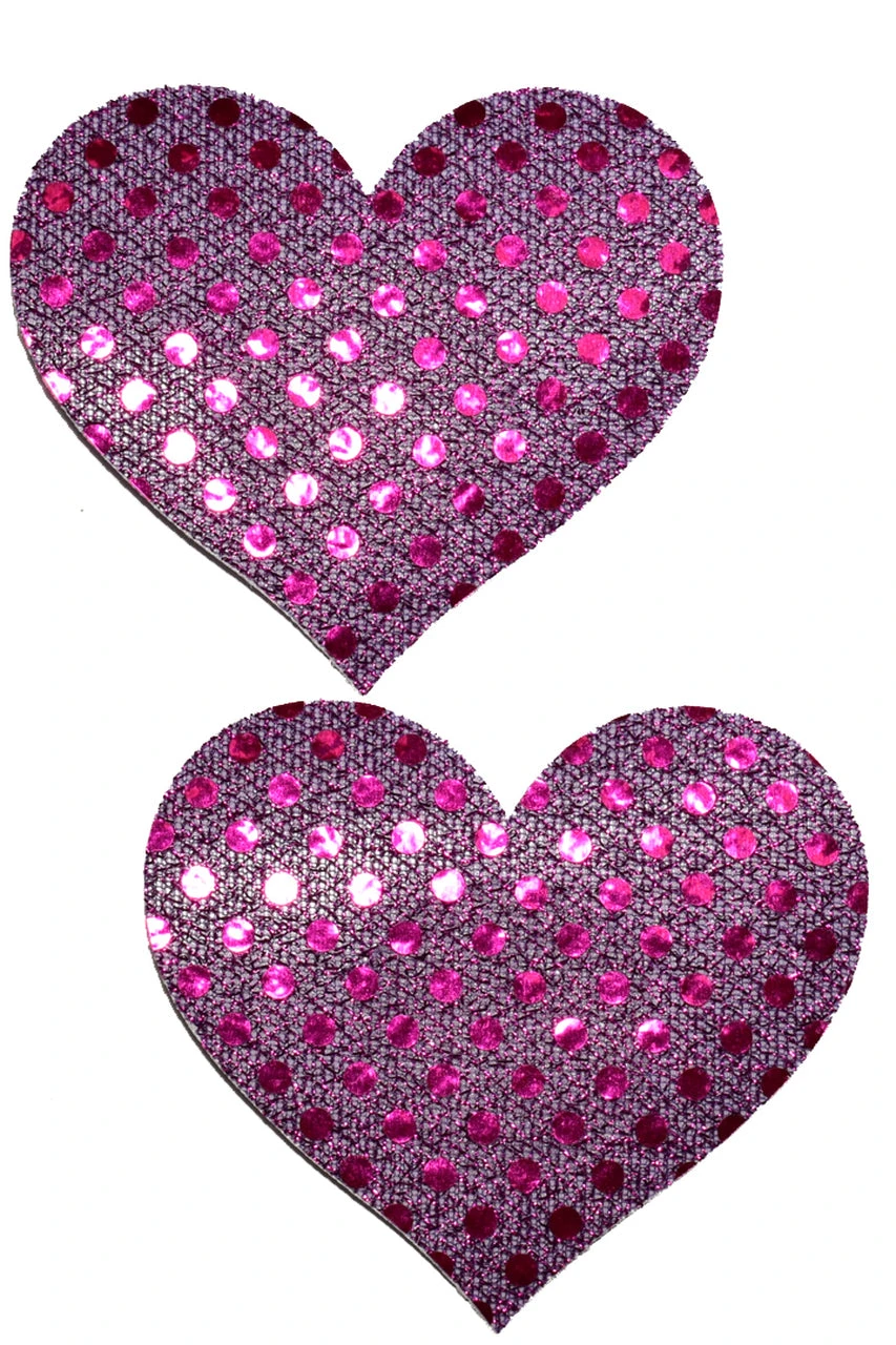 Purple Sequin Heart shaped nipple pasties. Features self adhesive tape, just peel and stick on clean, dry, oil-free skin!