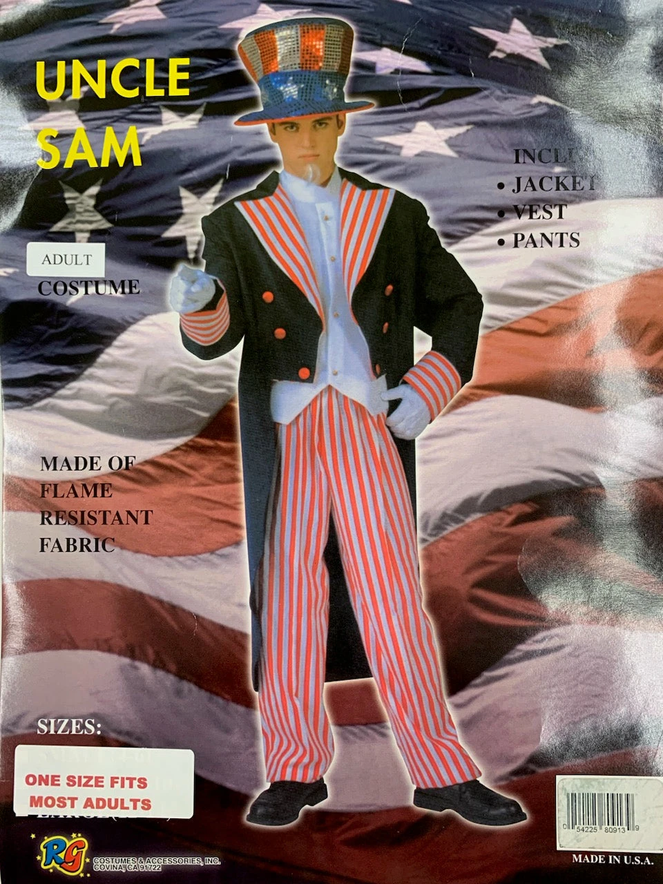 Get your Uncle Sam on with this three-piece costume: a jacket, vest, and pants included!